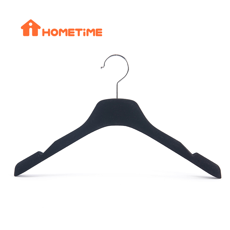 China Velvet Hangers Empty Bottom Luxury Black Plastic Flocked Coat Hangers