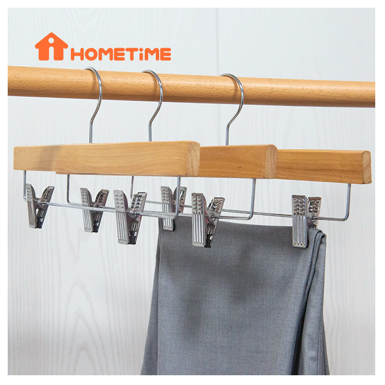 The wood pant hanger are crafted of smooth lacquered wood and golden metal accessories,