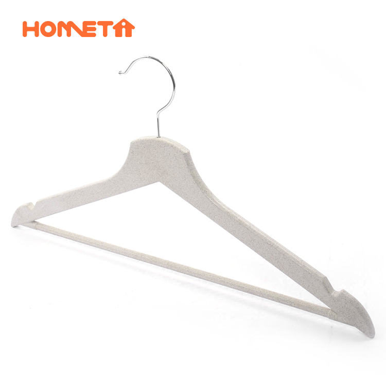 this clothes hanger is made ABS with non slip rubber coating.They also can be made of renewable natural wheat straw fiber material with PP.