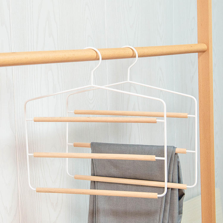 Nordic Style Wooden Pant Hangers with Metal Clips Beech Wood Pants Rack