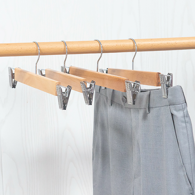 Wholesale Wooden Pants Hanger Cheap Pants Rack with Metal Clips
