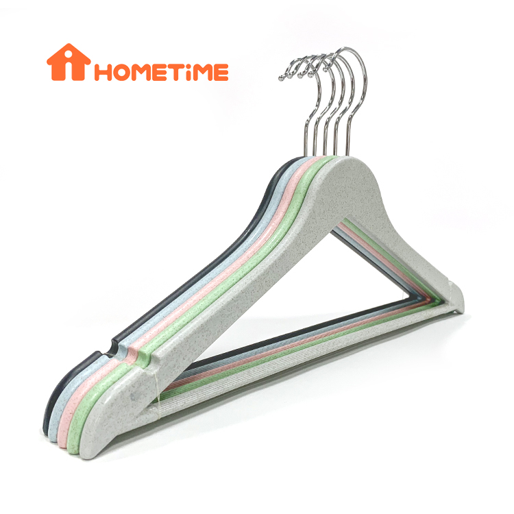 this clothes hanger is made ABS with non slip rubber coating.They also can be made of renewable natural wheat straw fiber material with PP.