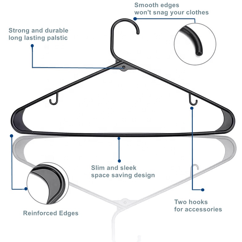 Slank en flak lichemûntwerp hâldt jo klean yn goede foarmen en maksimaliseart jo opslachromte foar kast. Edntwurpen mei 360-graden draai-chroom anty-roest hook, kinne jo klean hingje en nimme yn elke hoeke.Kleur kin oanpast wurde
