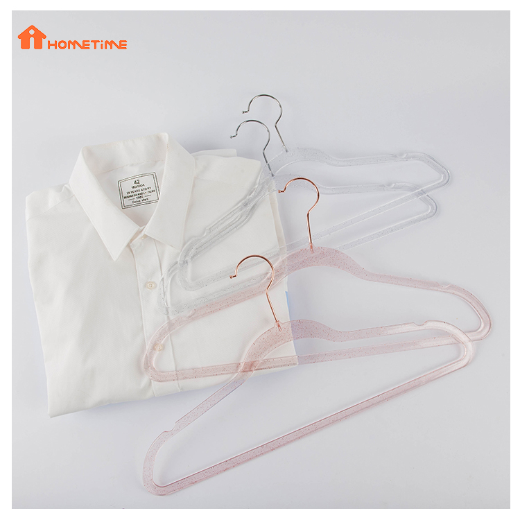 The plastic clothes hangers are made of transparent ps with glitter inside