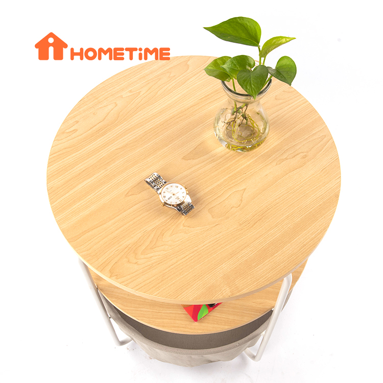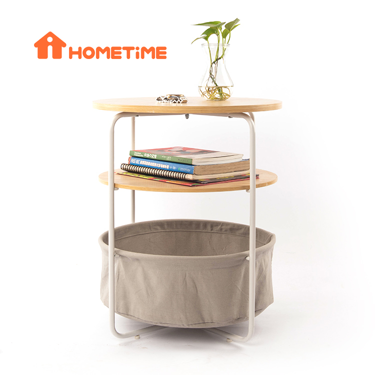 | termék név | Kerek oldalasztal Fém keretes fa tálcás végasztal szövet tároló kosárral |
