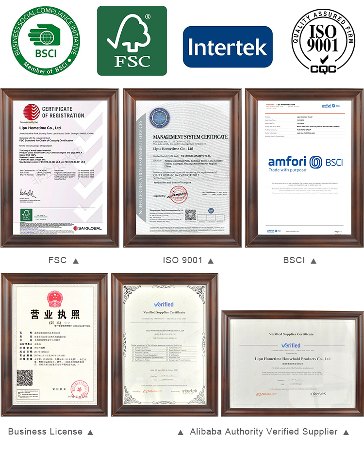 * Уақыт ISO9001 FSC BSCI сертификатталған. Біздің ілгіштер әлемнің 40 елінде 200-ден астам клиентке сатылады. Біз сондай-ақ Armani, Zara, Gucci, Tommy Hilfiger, Forever21, Splash, Balabala, Massimo Dutti, Olsen, Tesco, AUCHAN және Wal-Mart компанияларында қызмет еттік. Біздің мінсіз қызметтеріміз, сапалы өнімдеріміз бен бәсекеге қабілетті бағаларымыздың арқасында біз клиенттеріміздің арасында жақсы беделге ие болдық.
