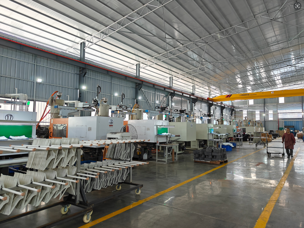 Demand for plastic hangers has been growing steadily, prompting our factory to expand with a new larger injection molding workshop.