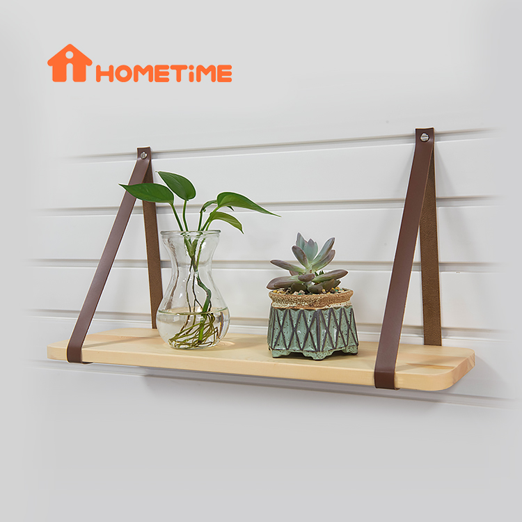 The wall mounted shelves made of New Zealand Pine with leather strap.