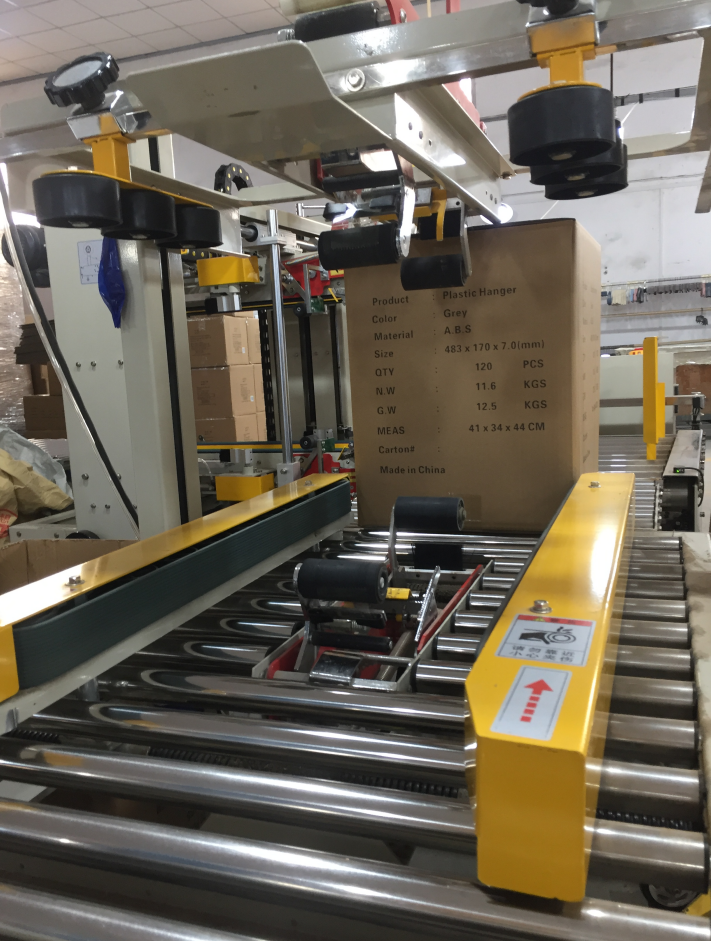Hometime factory has used Automatic carton sealing machine to pack our clothes hangers which improve the work efficiency.