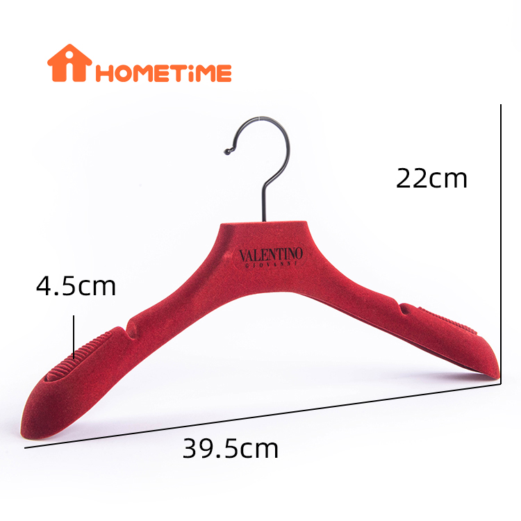 | Product Name | Red Velvet Coated Suit Hangers Custom Logo Luxury Flocking Clothes Plastic Coat Hangers |