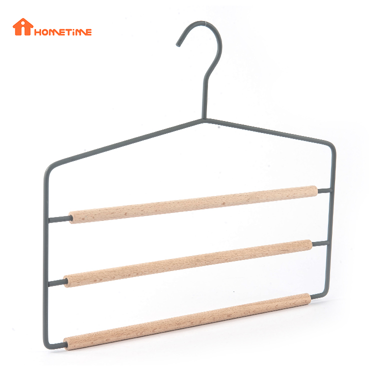 | numele produsului | Umeraș de cravată pentru pantaloni multifuncțional din metal cu 3 straturi cu bară din lemn natural |