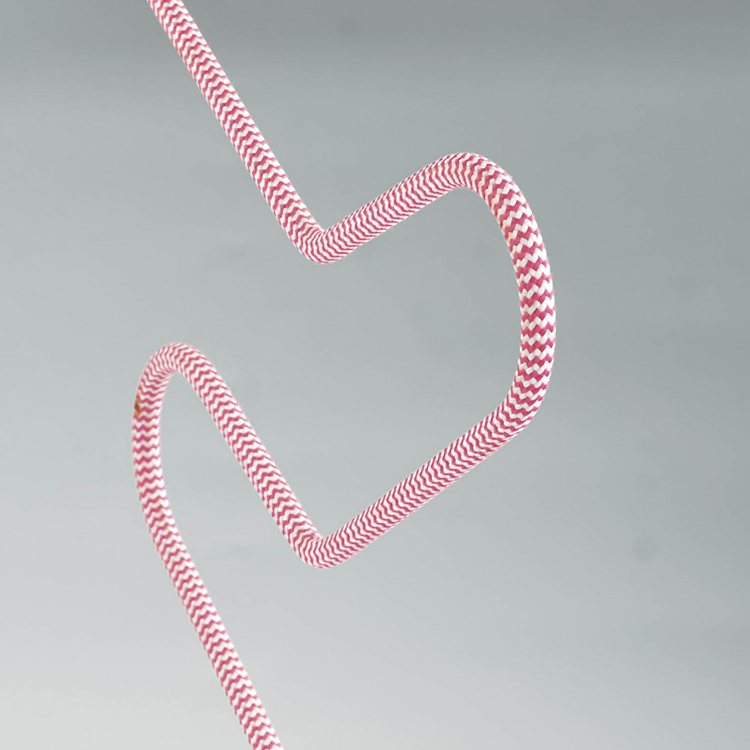 En robust metallkropp i 12 hål omlindad med färgglad flätad sladd.