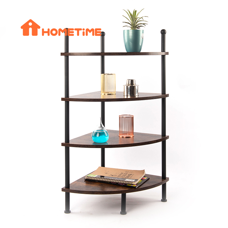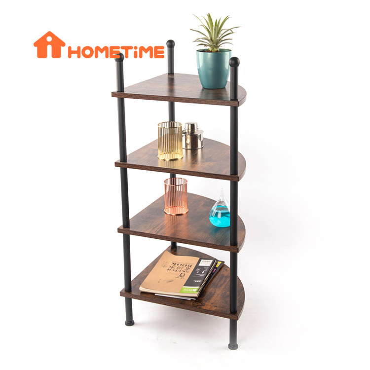 Yog'ochni saqlash uchun stend, metall ramkali 4 qavatli displey burchakli tokchalar