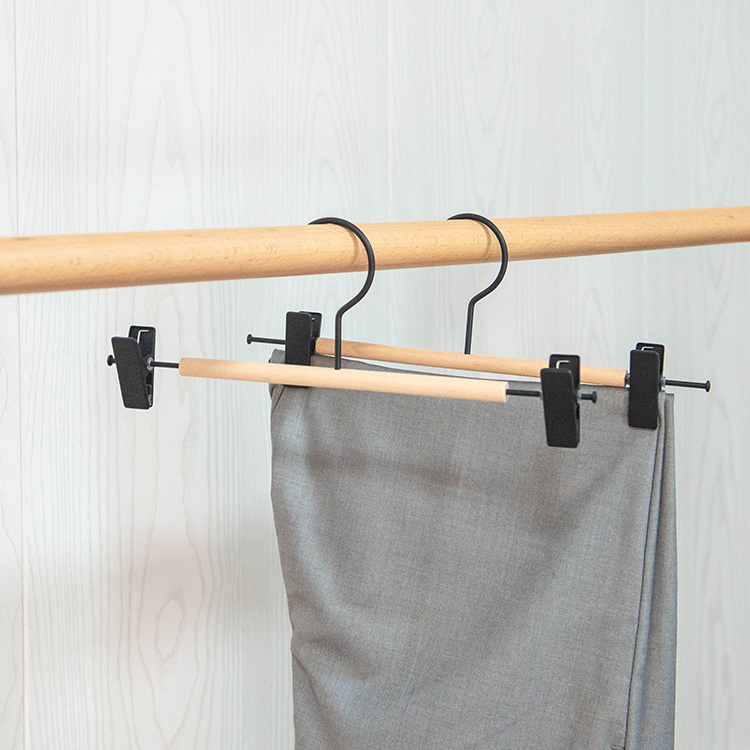 Nordic Style Wooden Pant Hangers with Metal Clips Beech Wood Pants Rack